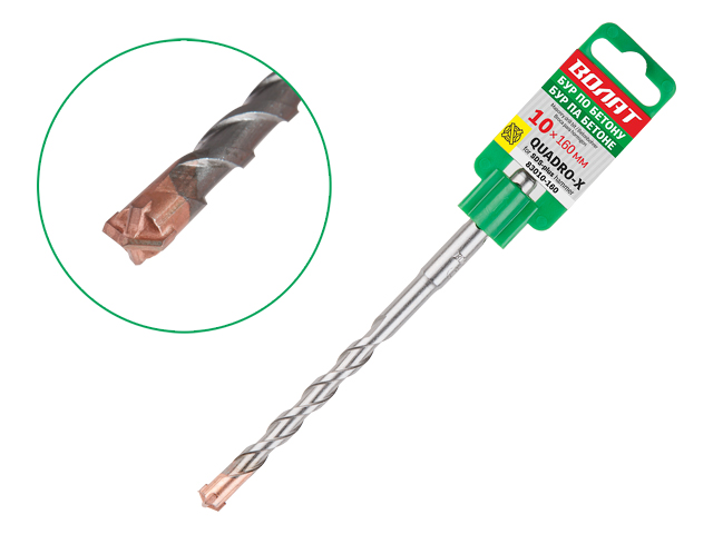 10х100х160 мм бур (сверло) SDS-plus QUADRO-X ВОЛАТ (бур по бетону, крестовая пластина)