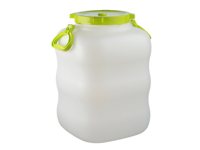 Пластиковый бак с крышкой на 40 литров способен обеспечить необходимый запас воды в домашних условиях или на выездных мероприятиях. Емкость с габаритами 510х370х370 мм изготовлена из полиэтилена и полипропилена. Боковые стороны имеют слабо выраженную волновую поверхность, придающую оригинальный внешний вид изделию. Бак отличается лаконичным, привлекательным дизайном и выполнен в двухцветном варианте - белый корпус, салатовые ручки и крышка. Они прочно крепятся к корпусу, обеспечивая герметичность закрытого бака и его удобную переноску.