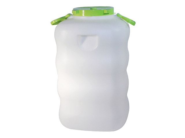 Оснащен надежной завинчивающейся крышкой. Бак легко переносить за прочные навесные ручки, а также специальные углубления по бокам.