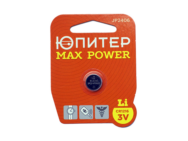 Батарейка CR1216 3V lithium 1шт. ЮПИТЕР MAX POWER