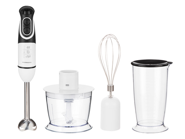 Блендер погружной AHB-542 NORMANN (900 Вт; регул.скор.; венчик; измельчитель; стакан)