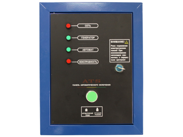 Панель автоматического включения представляет собой электронное устройство управления запуском электростанции. В случаях, когда напряжение в сети ниже допустимого уровня или отсутствует, контроллер в течение 2-6 секунд автоматически запускает электростанцию, которая продолжает подачу электропитания на энергопотребители.