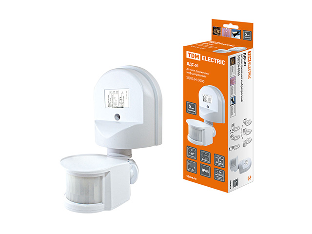 Датчик движения настенный ДДС-01 1100Вт, 5-480с, 2-12м, 5+Лк, 180гр, IP44, TDM