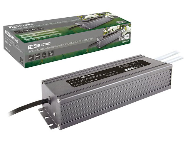 Драйвер (блок питания) для ленты светодиод. и модулей DC 200Вт, металл TDM (IP67)