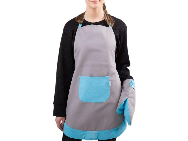 Фартук кухонный Assol, серый/бирюзовый, BEROSSI (Состав ткани: 35% хлопок, 65% полиэстер)