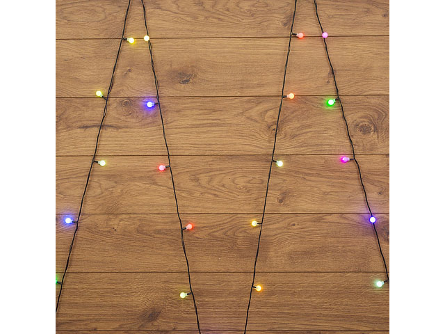 Режим свечения:смена цвета; срок службы:5 лет; IP 20; температурный режим: от -20 до +40; тип и количество источников света: 30 LED; цвет и материал провода: темно-зеленый ПВХ; цвет свечения:RGB; мощность:3,6 Вт; размеры:5 м; дополнительная информация: диаметр шариков 15 мм, можно соединить последовательно до 20 гирлянд Класс защиты 3 IP20