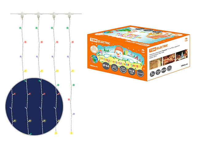 Гирлянда новогодняя "Занавес" 1х1 м, RGB, наружное использование, IP44, TDM