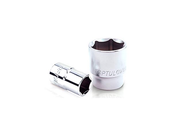 "Головка 1/2"" 6-гранная TOPTUL - торцевая головка общего назначения. Динамический профиль рабочей части сохраняет прочность граней болтов, так как основное усилие приходится на центр грани. Изготовлена из стали с применением хром-ванадиевого соединения. Рекомендуется для профессионального использования.