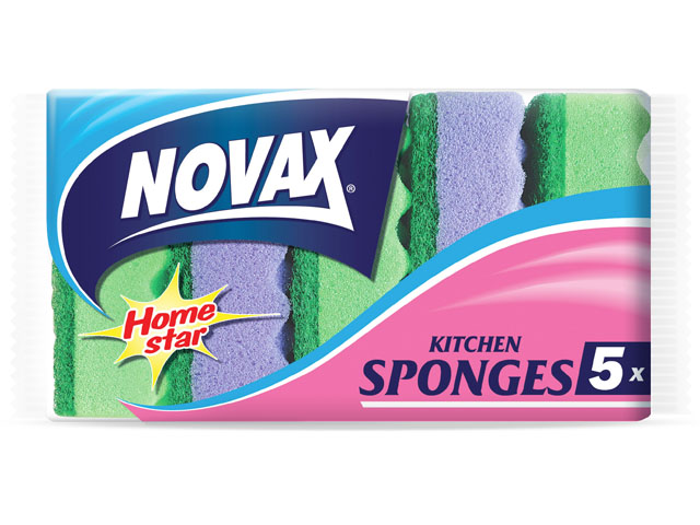 Губки кухонные 5 шт NVN (Материал: Пенополиуретан + фибра. Цвет: Зеленый / Фиолетовый. Размер единицы: 80 x 50 x 32 мм) (NOVAX)