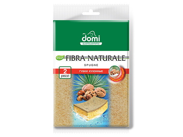 Губки кухонные натур. фибра 2 шт DOMI (Состав: поролон-бежевый, фибра- натуральная. Размер губки: 100х67х37мм)