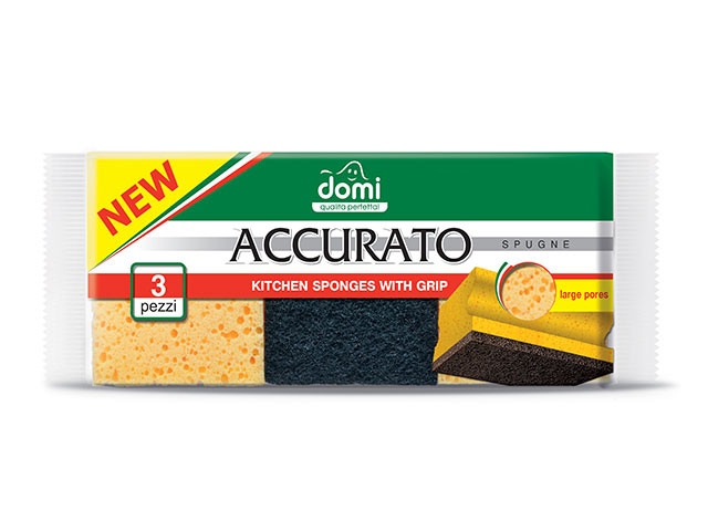 Губки кухонные профилированные 3 шт DOMI (Состав: поролон- желтый, фибра- черная. Размер губки: 95х70х49мм)