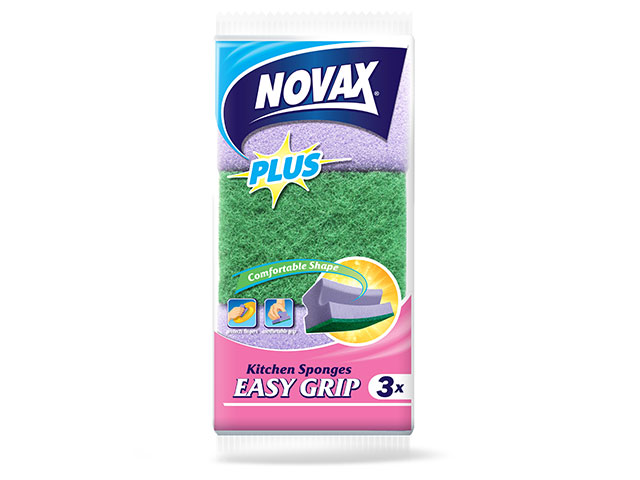Губки кухонные профилированные 3шт NV Plus (Материал: Пенополиуретан + фибра. Цвет: Зеленый/Фиолетовый. Размер единицы: 90 x 60 x 48 мм) (NOVAX)