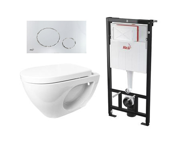 Инсталляционный сет 5 в 1 Rimflow с кнопкой управления M671+безободковый унитаз Alca-Трино,Alcaplast
