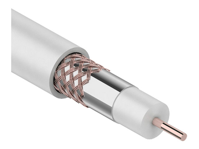 Кабель RG-6U+Cu (75 Ом), Cu/Al/Cu (1,0/Al/48х0,12 мм) 64%, (бухта 100 м), белый REXANT