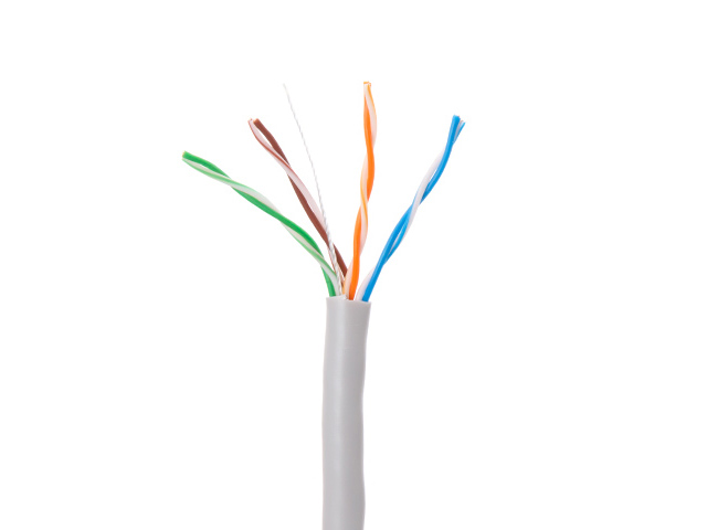 Четырехпарный кабель имеет следующую конструкцию: проводник - сплошная медная жила диаметром 24AWG (0,51мм). Два проводника составляют одну витую пару, в целом же, кабель состоит из четырех пар, скрученных с различным, специально подобранным шагом.