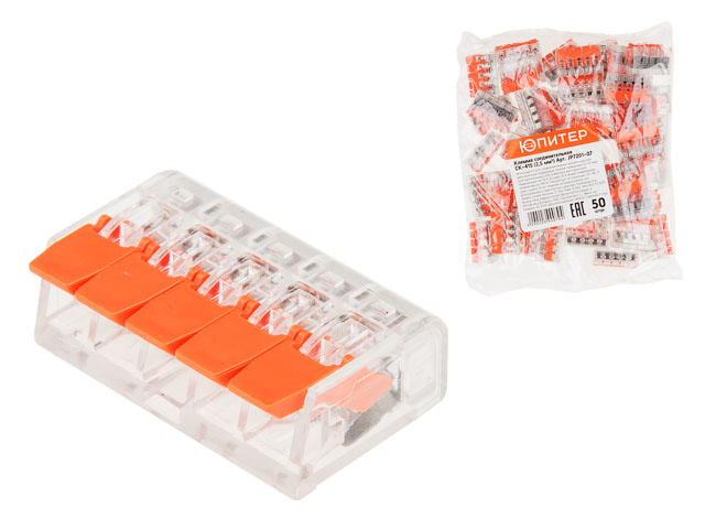 Клеммы соединительные ЮПИТЕР обеспечат быстрый монтаж и демонтаж проводников без дополнительных инструментов благодаря рычажку. Используется для соединения медных одножильных или многожильных проводников, для монтажа проводников в распределительной коробке, подключения светильников и другого оборудования.