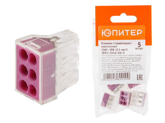 Клемма строит.-монтажная СМК-106 (2.5 мм2) (5 шт) ЮПИТЕР