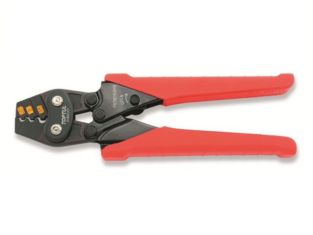 Клещи зажимные TOPTUL изготовлены из высокопрочной закаленной стали и предназначены для опрессовки не изолированных клемм на провода с площадью поперечного сечения 1,25 мм, 2 мм и 3,5 мм. А удобные ручки с анти-скользящим покрытием обеспечивают надежный хват инструмента. Рекомендуется для профессионального использования.