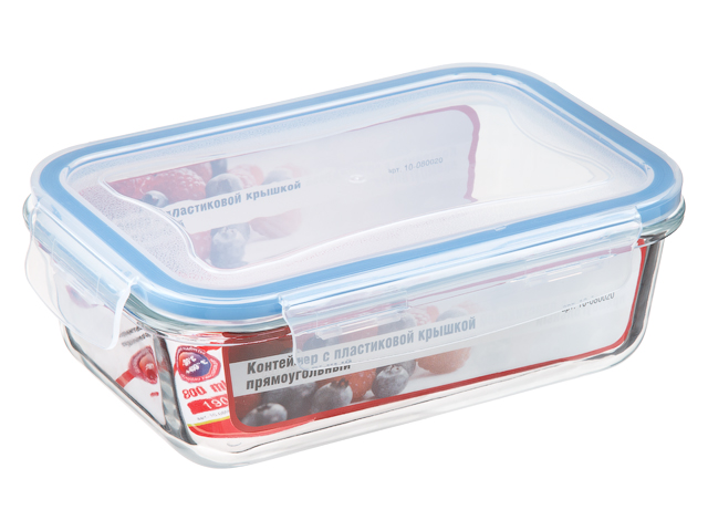 Контейнер из жаропрочного стекла, 0,8 л, прямоугольный, с пластиковой крышкой, PERFECTO LINEA (190х133х66 мм)