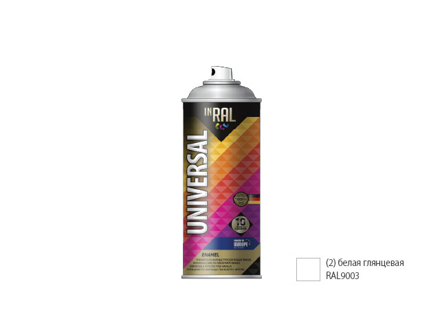 Краска-эмаль аэроз. универсальная белый глянец INRAL 400мл (9003) (Цвет белый глянц.)