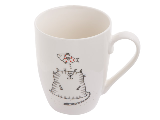 Кружка керамическая, 360 мл, Кот с рыбкой, PERFECTO LINEA