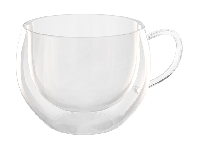 Кружка стеклянная с двойными стенками, 270 мл, серия Medio, QWERTY (Чашка стеклянная, ручной работы, с двойными стенками из боросиликатного стекла.)