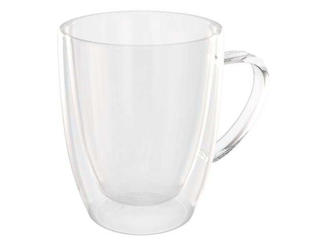 Кружка стеклянная с двойными стенками, 400 мл, серия Grande, QWERTY (Чашка стеклянная, ручной работы, с двойными стенками из боросиликатного стекла.)
