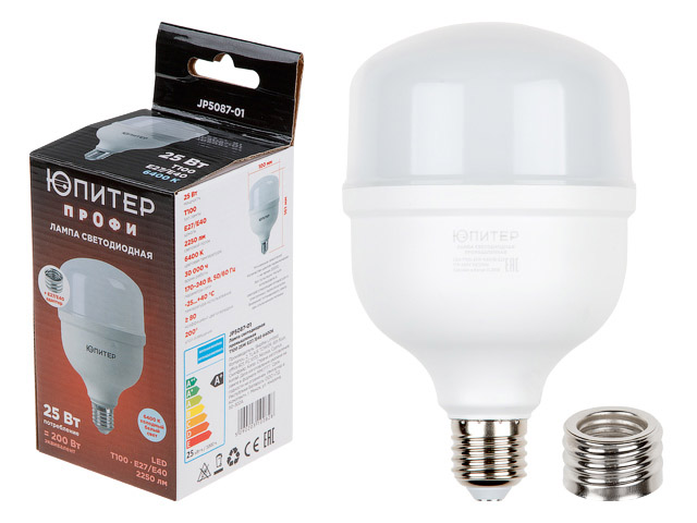 Лампа светодиодная промышл. T100 25 Вт 170-240В E27/E40 6400К ЮПИТЕР (200 Вт аналог лампы накал., 2250Лм, холодный белый свет)