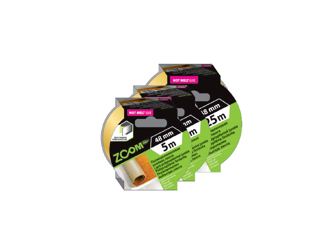 Лента двухсторонняя полипропиленовая клейкая 48ммх10м ZOOM (Желтая)