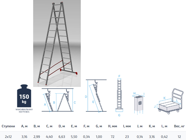 Лестница алюм. 2-х секц. 299/550см 2х12 ступ., 12,0кг PRO STARTUL (ST9946-12)
