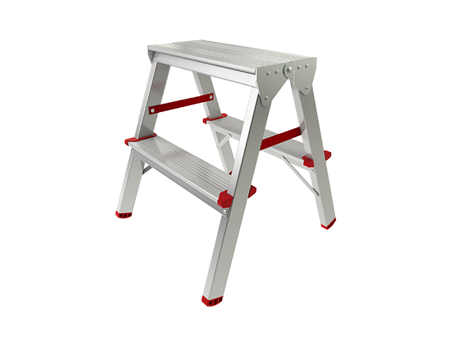 - ступени с двух сторон позволяют работать не переставляя стремянку тем самым экономя время;