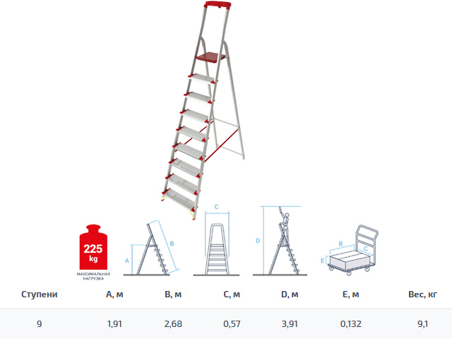 Лестница-стремянка алюм. проф. 191 см 9 ступ. 9,1кг NV500 Новая Высота (с лотком-органайзером, макс. нагрузка 225кг)