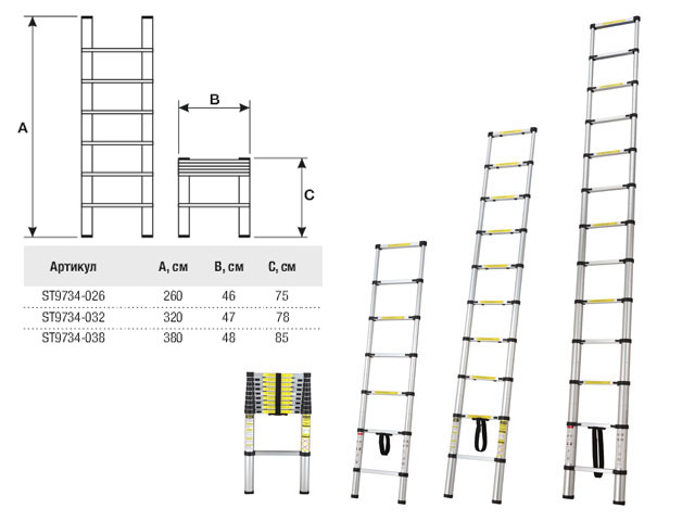 Лестница телескопическая 1-секц. алюм. 260см, 9 ступ. 6,4кг STARTUL (ST9734-026)