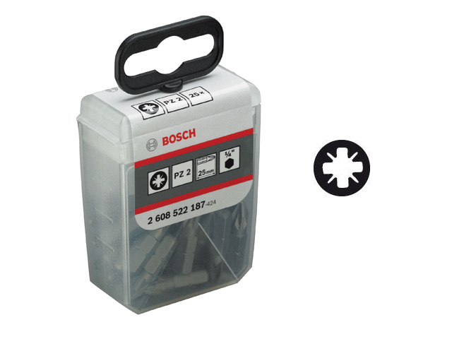 Набор бит Extra Hard PZ2 x 25мм в упаковке "Tic Tac" (25шт) (BOSCH)