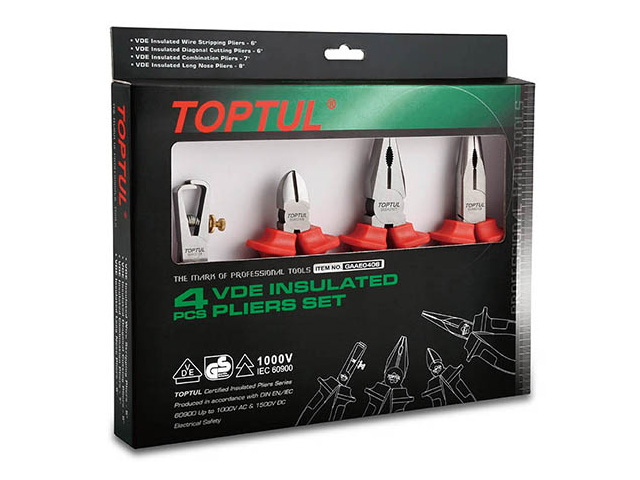Набор бокорезы, плоскогубцы, тонкогубцы, клещи 4пр. диэлектрические TOPTUL (GAAE0406)