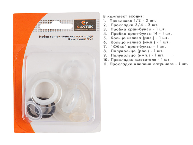 Набор сантехнических прокладок для смесителя "Сантехник" №2 в блистере (Симтек)