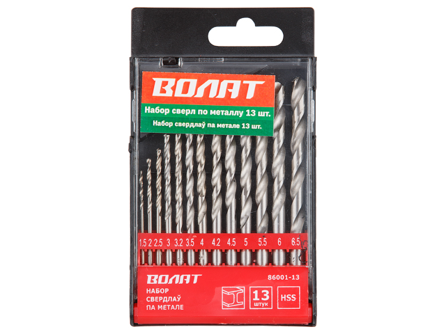 Набор сверл по мет. 13шт 1.5-6.5мм HSS ВОЛАТ