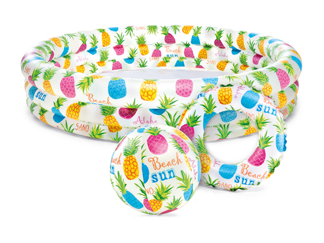 Надувной детский бассейн Ананас, 132х28 см + надувной мяч 51 см, надувной круг 51 см, INTEX (от 2 лет)