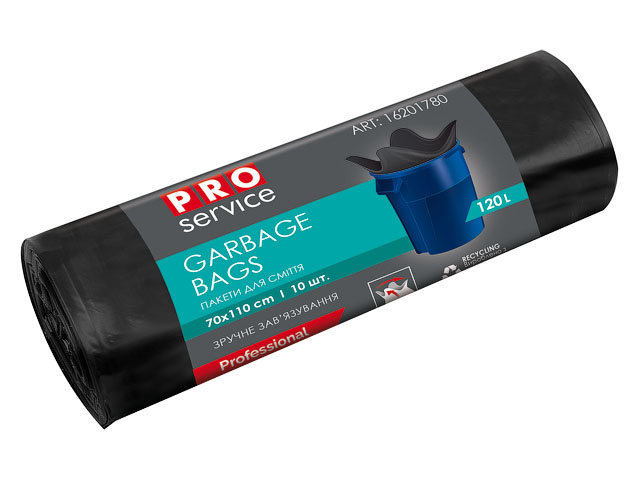 Пакеты для мусора с ушками, 120 л, 10 шт., черные, PROservice (для проф. использования в промышл. объетах и объектах с высокими требованиями к качеств