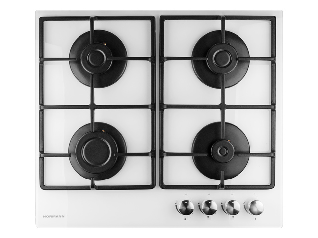 Панель варочная газовая NORMANN BHG-6451S (белый) (4 конф.; закал. стекло; газ-контроль; пьезоподжиг; чугун.реш.)