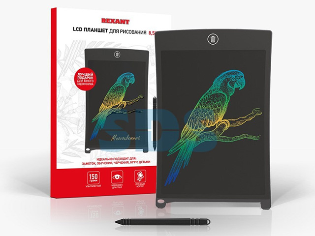 Планшет RexantR 8,5 дюймов предназначен для фиксирования заметок и создания графических простейших рисунков. Он избавит от необходимости держать под рукой блокноты, бумагу для записей, переводить кучу бумаги на временные записи и покупать бесконечно альбомы для детских зарисовок.