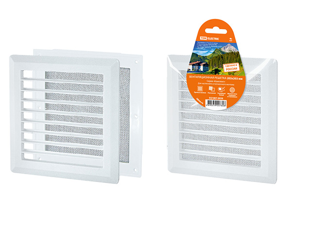 Решетка вентиляционная разъемная с москитной сеткой, прямые жалюзи, 203х203 TDM