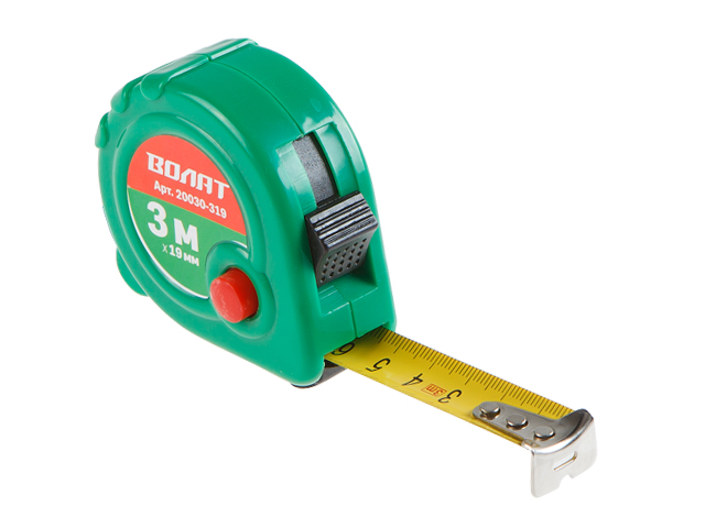 Рулетка 3м/19мм пласт. корп. ВОЛАТ (быт.) (3 независимых механизма фиксации ленты)