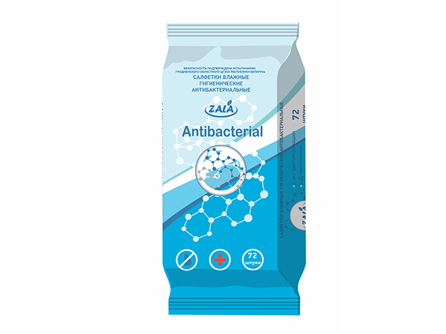 Салфетки влажные гигиенические антибактериальные, 72 шт., ZALA JOY