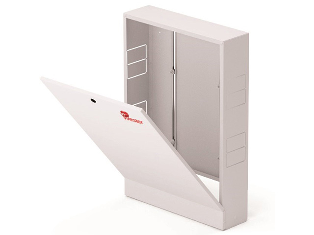 В боковых стенках корпуса шкафа выполнена перфорация, сегменты которой удаляются в любом удобном месте для подсоединения трубопроводов