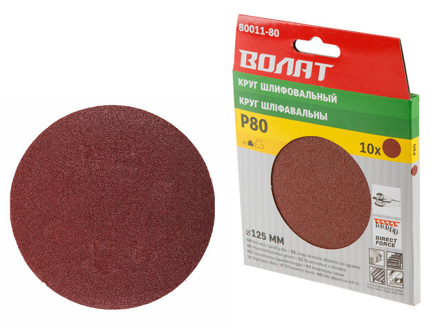 Шлифлист 125мм круг Р 60 д/дерева 10шт. ВОЛАТ (круг абразивный шлифовальный)