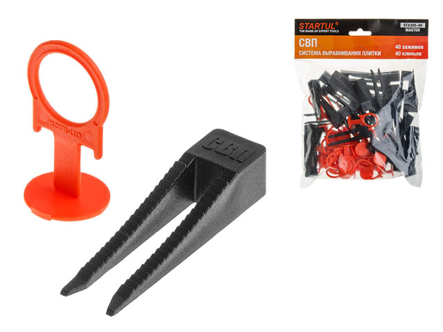 Данная система представляет собой приспособление для качественной и ровной укладки плитки. Система выравнивания плитки (СВП) позволяет даже неопытному укладчикуровно и качественно проделать все необходимые работы. А опытный мастер при использовании такой системы может существенно увеличить свою производительность. Кроме того СВП позволяет отказаться от использования крестиков, так как применяемые зажимы, создают идеальный шов между плитками. СВП включает в себя два элемента - зажим и клин. Зажим является одноразовым элементом. После высыхания клея верхняя часть зажима обламывается, а основание остается под плиткой. Клин является многоразовым и его можно применять до 10 раз.