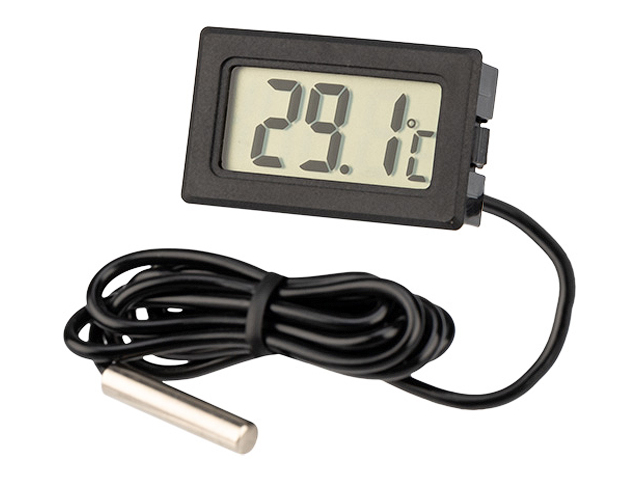 Термометр экономичен и прост в эксплуатации, имеет небольшие размеры, простой дизайн и большой дисплей. Выносной датчик дает ряд преимуществ, например можно измерить температуру за окном квартиры, или воды в аквариуме.