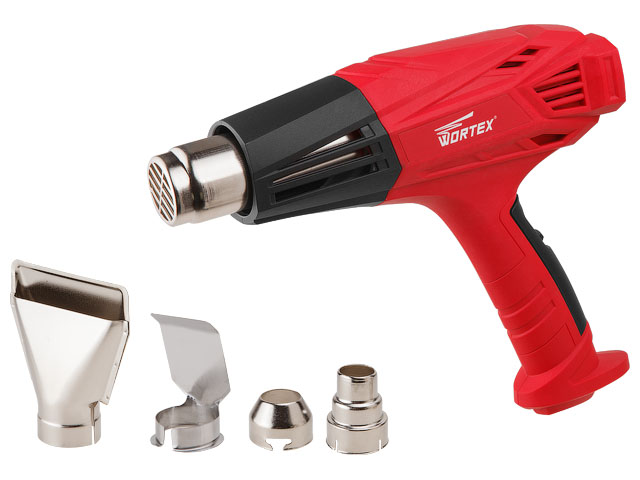 Термовоздуходувка WORTEX HG 6020 в кор. + набор сопл (2000 Вт, 2 скор., 450-600 °С, ступенч. рег.,250-500 л/мин)