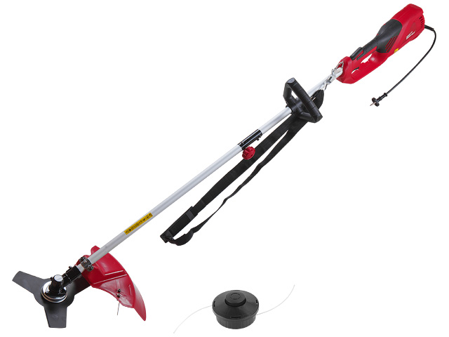 Электрический триммер предназначен для использования на приусадебных участках средней площади. Оснащен эргономичной прорезиненной рукояткой и удобным снятием блокировки пуска. Установлена система плавного пуска. Предусмотрена возможность эксплуатации как с леской, так и с трехлопастным ножом. Производительность кошения составит примерно 3 сотки в час.